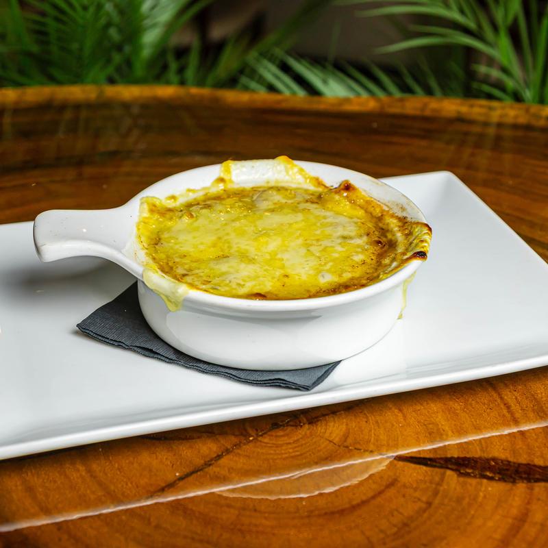 Onion, spinach, anise crema, candied bacon, and crostini.