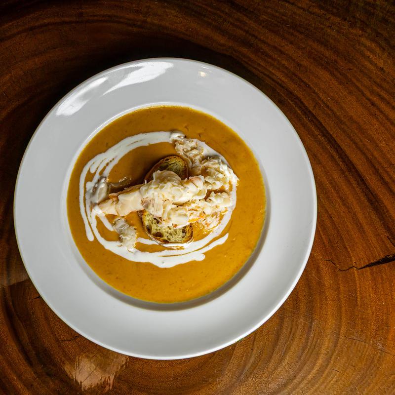 Butter-poached lobster, crème fraiche, and crostini.