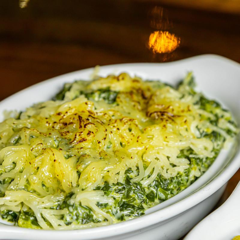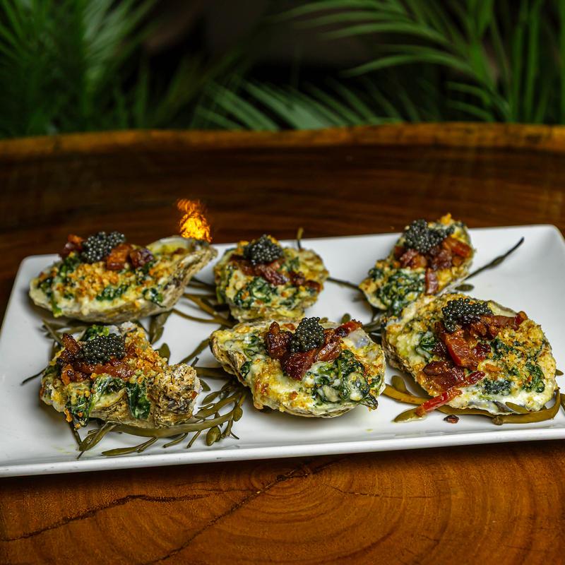 Creamed spinach, bacon, and bread crumbs | Add caviar for $3.00 per oyster.